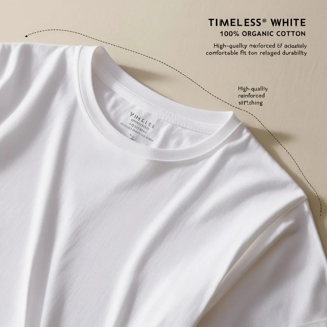 A timeless white t-shirt made from 100% organic cotton. Features a comfortable fit with reinforced stitching at the seams for added durability. Perfect for everyday wear or as a base layer.