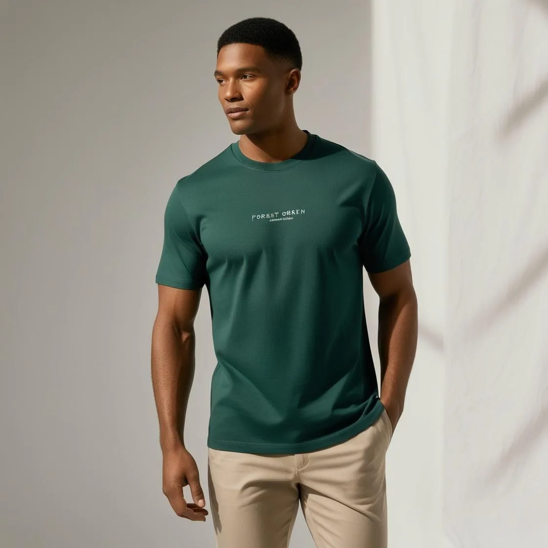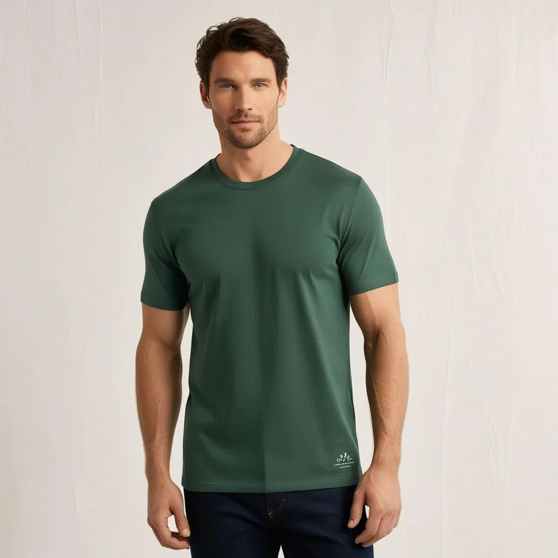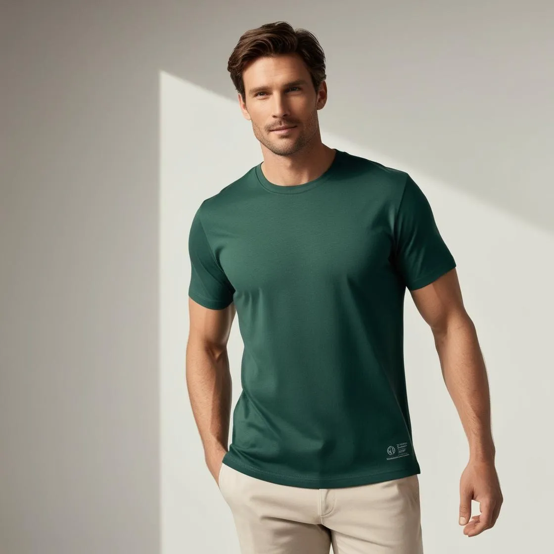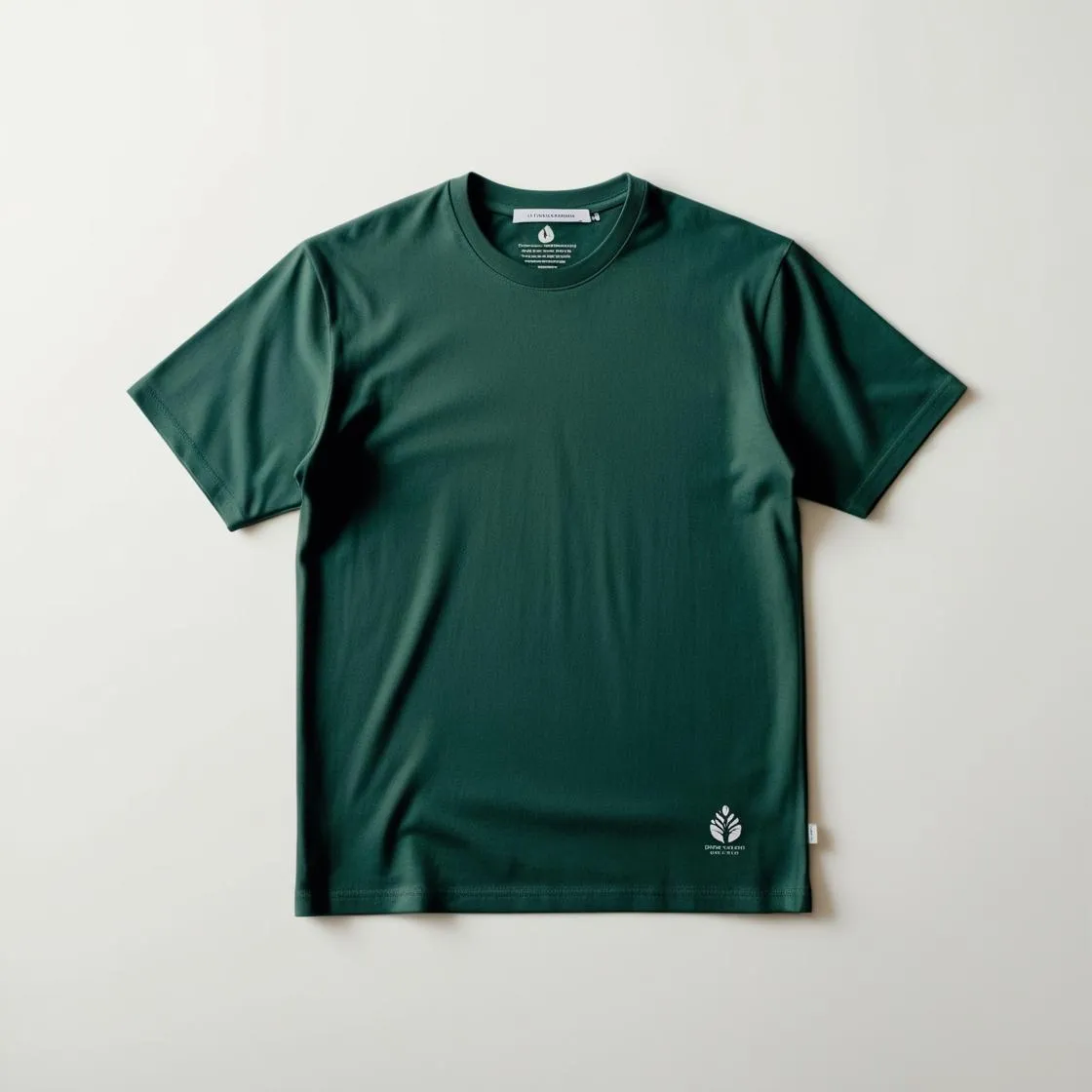 Eco-friendly forest green t-shirt crafted from 100% certified organic cotton. Features a regular fit with minimal branding for a clean and versatile look.
